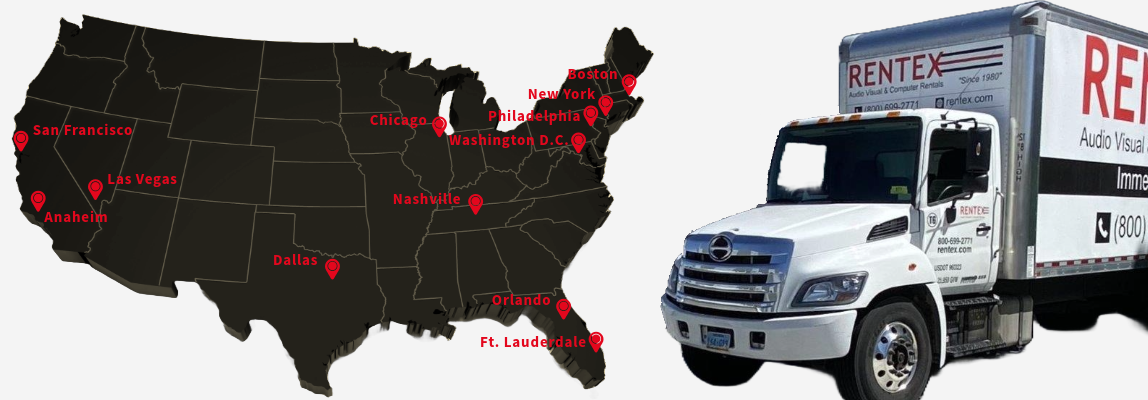 Founded in 1980, Rentex is one of the largest and most trusted wholesale providers of pro audio visual, production, and computer rental equipment in the nation. We are a longtime leader in the cross rental market supplying the nation’s largest AV rental, staging, production, and other live event companies with complete audio visual rental equipment and services.